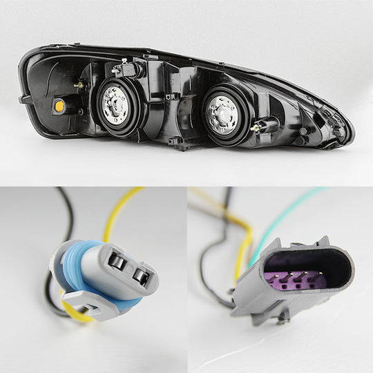 AKKON - For Pontiac Grand Prix Black Bezel Dual Halo Ring Projector Replacement Headlights w/ Corner Signal Set