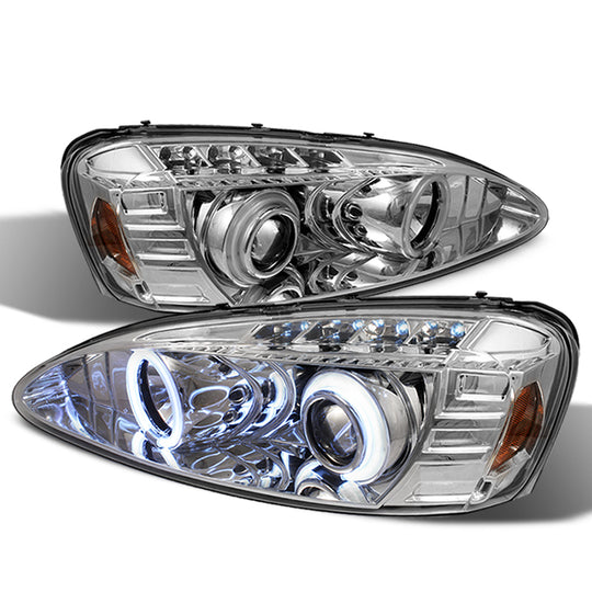 AKKON - For Pontiac Grand Prix Chrome Clear Dual CCFL Halo Projector Replacement Headlights Front Lamps Pair Set