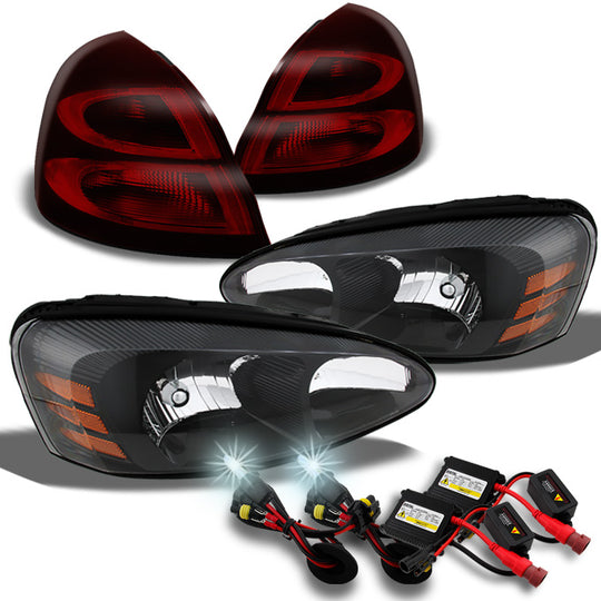 AKKON - For Pontiac Grand Prix Black Head Lamps Headlights + Dark Red Tail Lights + Slim Ballast 6000K HID Kit