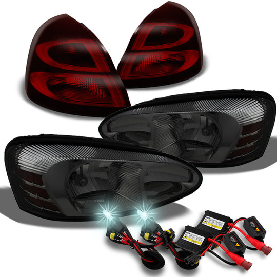 AKKON - For Pontiac Grand Prix Smoked Head Lamps Headlights + Dark Red Tail Lights + Slim Ballast 8000K HID Kit