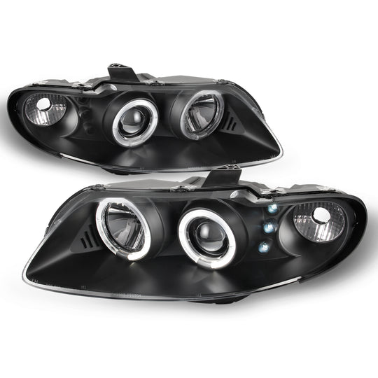 AKKON - For Pontiac GTO Black Bezel Dual Halo Ring Projector Replacement Headlights Front Lamps Left/Right Pair