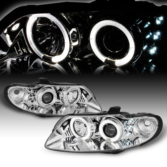 AKKON - For Pontiac GTO Chrome Clear Dual Halo Ring Projector Replacement Headlights Front Lamps Left/Right Pair