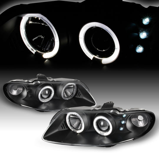 AKKON - For Pontiac GTO Black Bezel Dual Halo Ring Projector Replacement Headlights Front Lamps Left/Right Pair + 8K HID