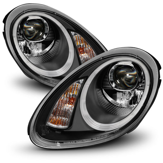 AKKON - For Porsche Boxster / Cayman 987 Halogen Type LED DRL Black Housing Projector Headlights Lamps