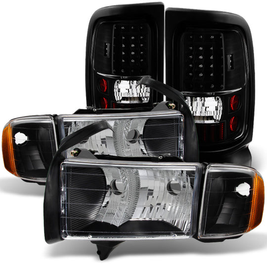 AKKON - For Ram Pickup Sport 99-01 1500 | 99-02 2500/3500 Black Headlight + Black LED Tail Lights Left+Right