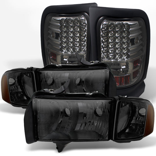 AKKON - For Ram 99-01 1500 |99-02 2500/3500 Sport Truck Smoked Headlight+ Smoke LED Tail Brake Light Lamp