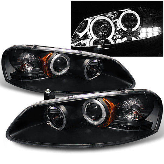 AKKON - For Sebring Stratus 4 Doors Sedan Black Bezel Dual Halo Ring LED Design Projector Headlights Replacement