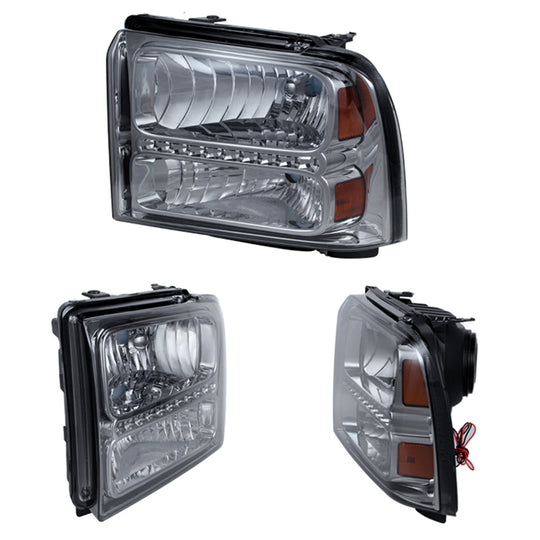 AKKON - For Smoke 05-07 Ford F-Series Superduty 05 Excursion Headlight Front Lamps Direct Replacement Pair