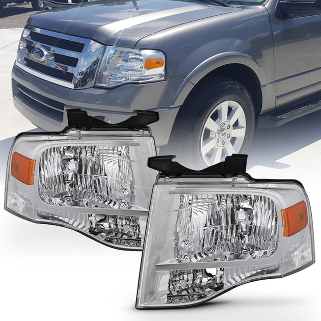 AKKON - Fits 2007-2014 Ford Expedition SUV Chrome Headlights Replacement Headlamps Left Driver+Right Passenger Pair