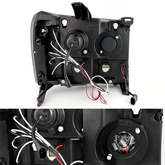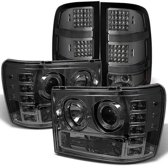 AKKON - For Smoked 2007-2013 GMC Sierra 1500 2500 3500 Halo Projector Headlights + Black Smoked LED Tail Lights