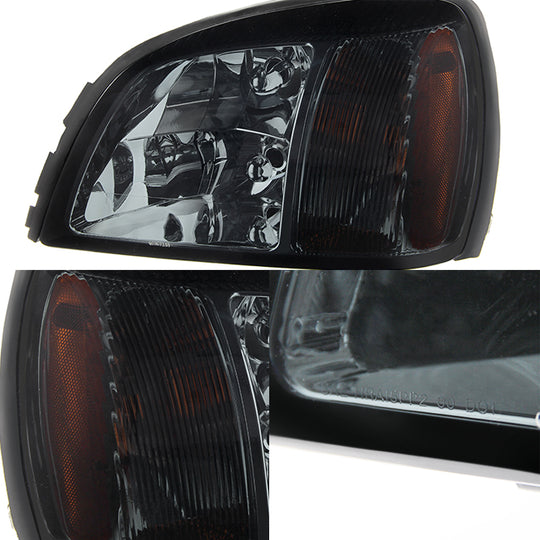 AKKON - For Smoked Smoke 00-05 Cadillac Deville Headlights Front Lamps Direct Replacement Pair Left + Right