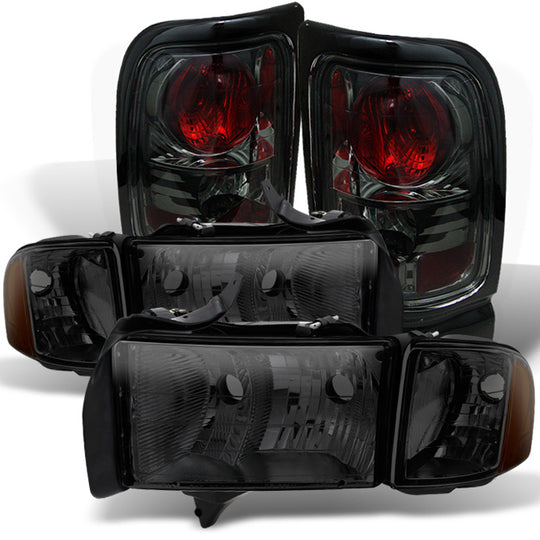 AKKON - For Smoked Headlight Fot Dodge Ram 99-01 1500/ 2500/ 3500 Sport Pickup + Smoke Tail Brake Light Set