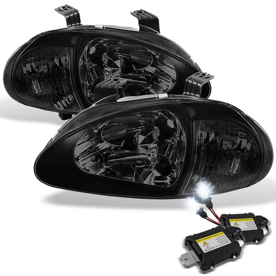 AKKON - For Smoked lens For Honda 93-97 Del Sol 1Pc Crystal Headlights w/Corner Lamp+ 6000K Slim Ballast HID Kit
