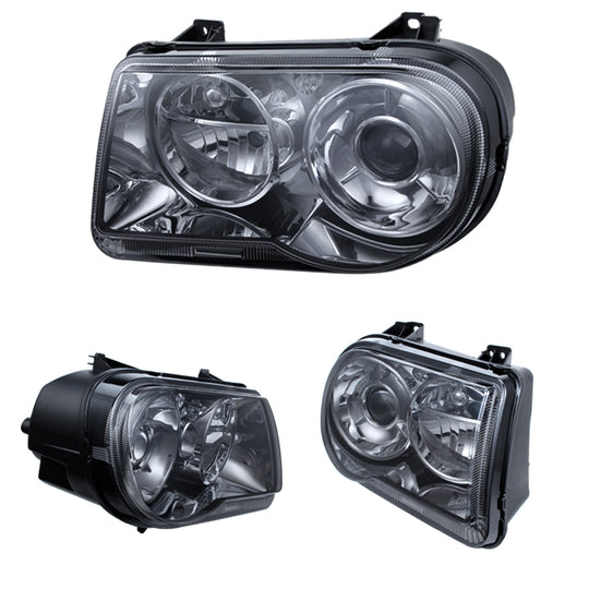 AKKON - For Smoked Smoke 05-10 Chrysler 300C Headlights Front Lamps Direct Replacement Pair Left + Right