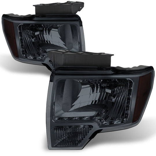 AKKON - For Smoked Smoke 09-14 F150 Pickup Truck LED Headlights Front Lamps Direct Replacement Left + Right