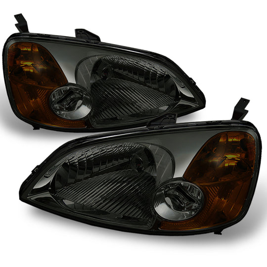 AKKON - For Smoked Smoke 01-03 Honda Civic sedan Coupe Headlights Front Lamps Replacement Pair Left + Right