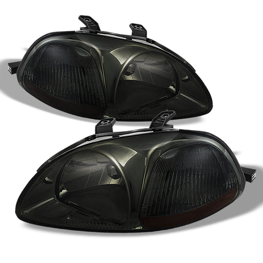 AKKON - For Smoked Smoke 96-98 Honda Civic Coupe Sedan Headlights Front Lamps Replacement Pair Left + Right