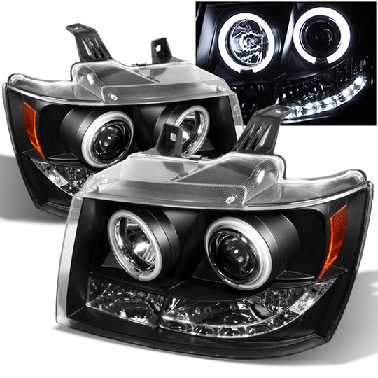 AKKON - For Suburban Avalanche Tahoe Black Dual CCFL Halo Ring LED DRL Projector Replacement Headlights Lamp