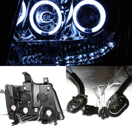 AKKON - For Suburban Avalanche Tahoe Black Smoke Dual CCFL Halo Ring LED DRL Projector Replacement Headlights