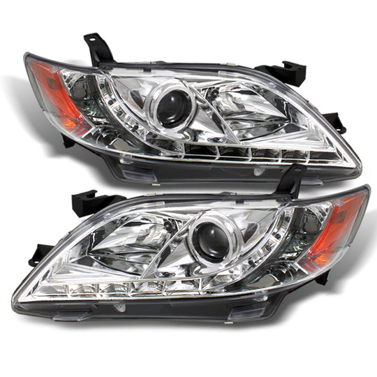 AKKON - For Toyota Camry Chrome Clear DRL Daylight LED Strip Projector Headlights Front Lamp Left + Right Pair