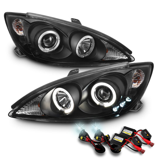 Regular price $188.96This is a 100% brand new pair of Headlights Replacement Assemblies in Midnight Black Housing With Crystal Clear Lens + 6000K HID Compatible With: 2002-2006 Toyota Camry All Model ***2002-2004 Models may need Wiring Modification to... -