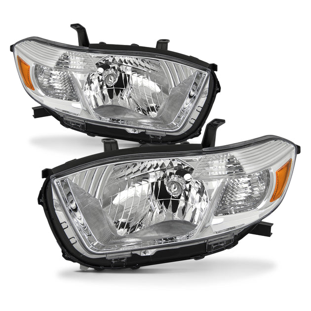 AKKON - Fits 2008 2009 2010 Toyota highlander [Halogen Type] Chrome Headlights Pair Left+Right Replacement