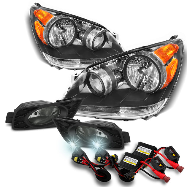 AKKON - Fits 2008 2009 2010 Honda Odyssey Van Front Black Housing Headlights Assembly + Smoked Fog Lamp + 6000K