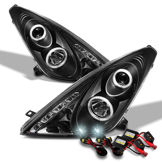 AKKON - For Toyota Celica GT/GTS T230 LED Halo Black Housing Projector Headlight Front Lamp Pair + 6000K HID
