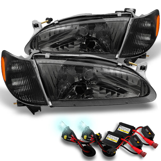 AKKON - For Toyota Corolla 4Dr Sedan Smoke Headlights W/ Corner Lamps Sets +Slim Ballast 8000K White Blue HID