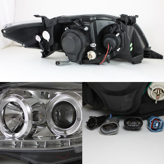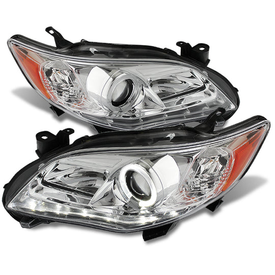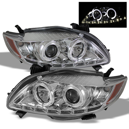 AKKON - For Toyota Corolla Chrome Clear Dual Halo Ring DRL Daylight LED Projector Headlights Replacement Pair