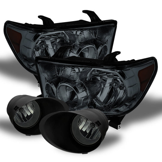 AKKON - For Toyota Tundra Pickup Truck Crystal Smoked Headlights + Smoked Bumper Fog Lamp w/Switch+Bulbs