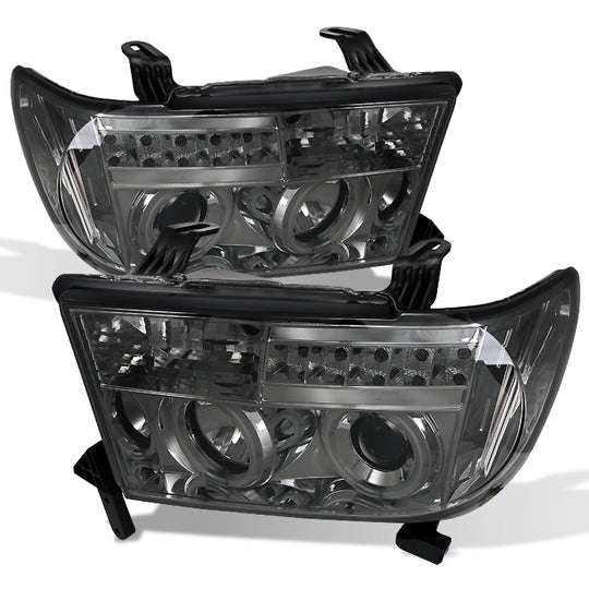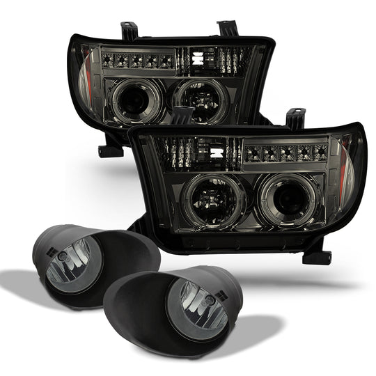 AKKON - For Toyota Tundra Sequoia Smoke CCFL Halo Ring Projector LED Replacement Headlights Left/Right Lamps