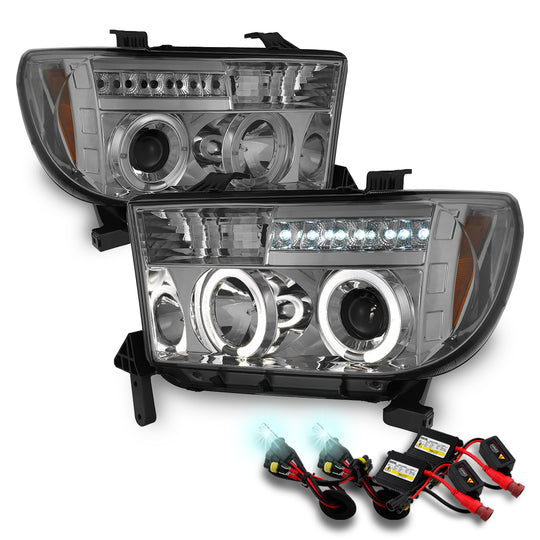 AKKON - For Toyota Tundra Sequoia Smoke Dual Halo Ring Projector LED Replacement Headlights Left/Right Lamps + 8K HID