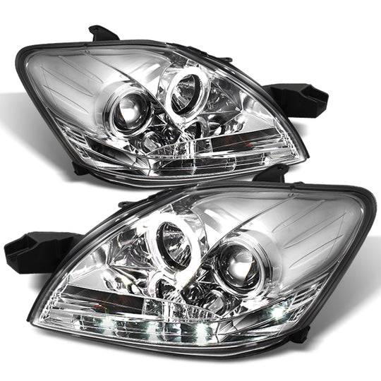 AKKON - For Toyota Yaris Chrome Clear Halo Ring DRL Daylight LED Strip Projector Headlights Front Lamps Pair Set