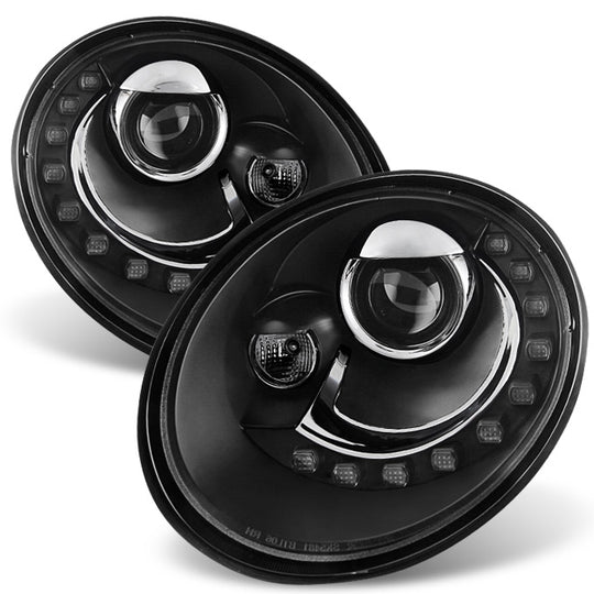 AKKON - For VW Beetle Black Bezel DRL Daylight LED Strip Projector Headlights Front Lamps Left + Right
