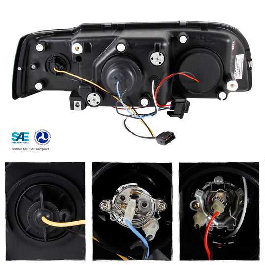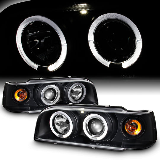 AKKON - For Volvo 850 Black Bezel Dual Halo Ring Projector Headlighs Front Lamps Replacement Pair Left + Right