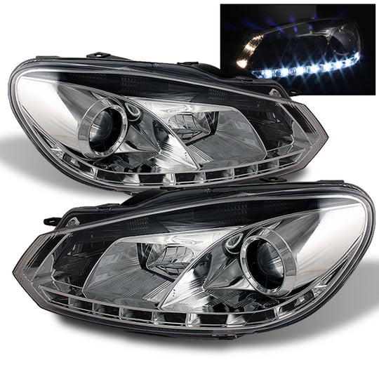 AKKON - For VW GTI Jetta R32 Chrome DRL Daylight LED Halogen Type Projector Headlights Replacement
