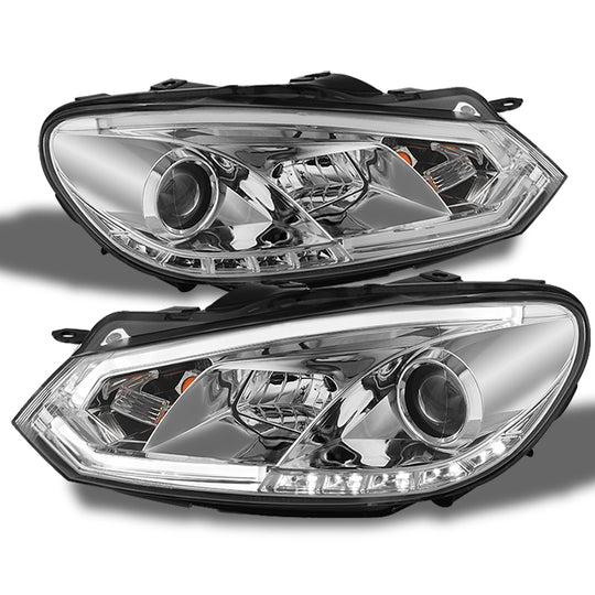 AKKON - For VW GTI Jetta R32 Chrome Clear DRL Daylight LED Light Tube Halogen Type Projector Headlights