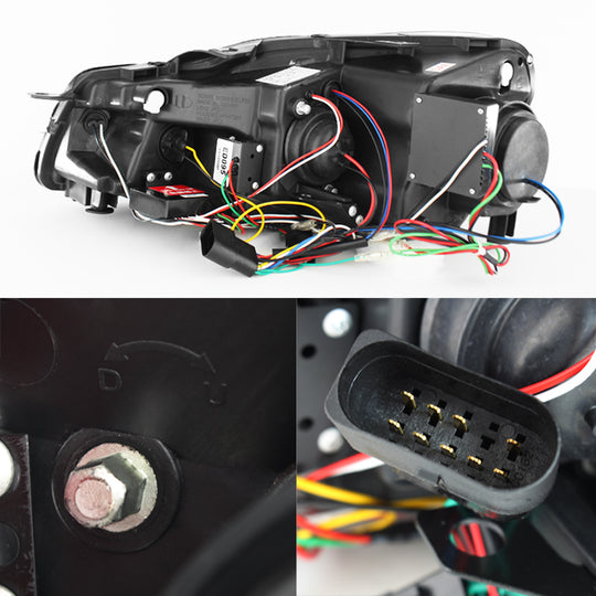 AKKON - For VW GTI Jetta R32 Black Bezel DRL Daylight LED Halogen Type Projector Headlights Replacement