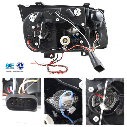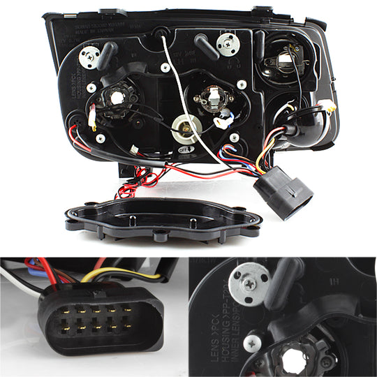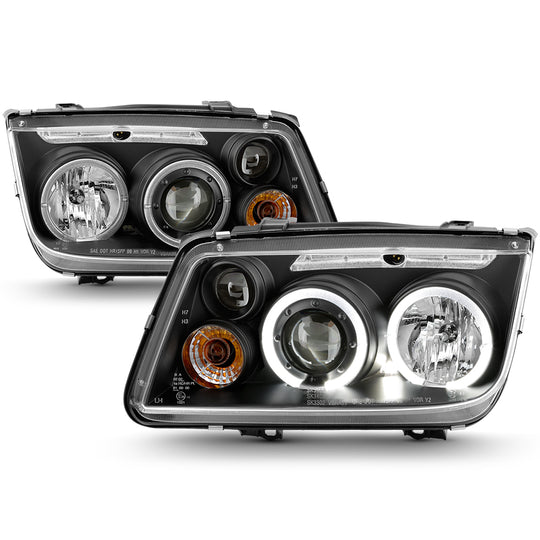 AKKON - For VW Jetta Bora A4 Black Bezel Halo Ring Projector Headlight Front Lamps Replacement Pair