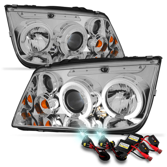 AKKON - For VW Jetta Bora A4 Chrome Clear Halo Ring Projector Headlight Front Lamps Replacement Pair + 8K HID