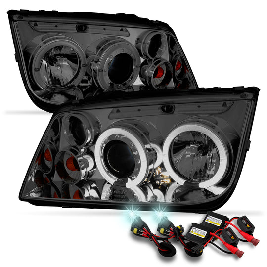 AKKON - For VW Jetta Bora A4 Smoked Smoke Halo Ring Projector Headlight Front Lamps Replacement Pair + 8K HID