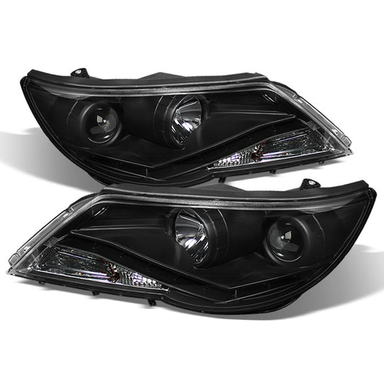 AKKON - For VW Tiguan S, SE And Wolfsburg Edition Black Bezel DRL LED Strip Projector Headlight Lamps