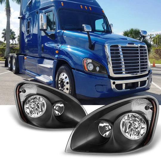 Regular price $143.99This is a 100% brand new pair of Headlights Replacement Assemblies in Midnight Black Housing With Crystal Clear Lens Compatible With: 2008-2016 Freightliner Cascadia Halogen Type Headlights Only ***Not Compatible with Factory LED & HID Headlights...