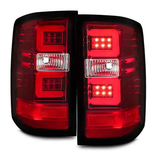 AKKON - For [C-Shape LED Tube] 2016-2018 Chevy Silverado 1500 K2XX Red Lens Chrome Housing Tail lights Brake Lamps Left + Right