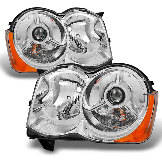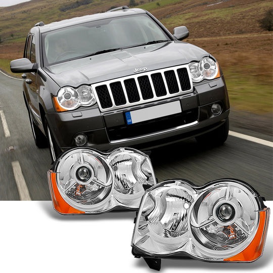 Regular price $142.99This is a 100% brand new pair of Headlights Replacement Assemblies in Polished Chrome Housing With Crystal Clear Lens Compatible With: 2008-2010 Jeep Grand Cherokee Halogen Type Headlights Models Only ***NOT Compatible with Factory HID Headlights... -
