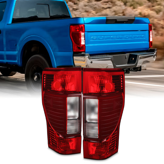 Regular price $174.99This is a 100% brand new pair of Replacement Tail Lights in Chrome Housing Red Clear Lens Compatible With: 2020-2022 Ford F250 2020-2022 Ford F350 2020-2022 Ford F450 Compatible with Factory Incandescent Tail Light w/ Blind... -