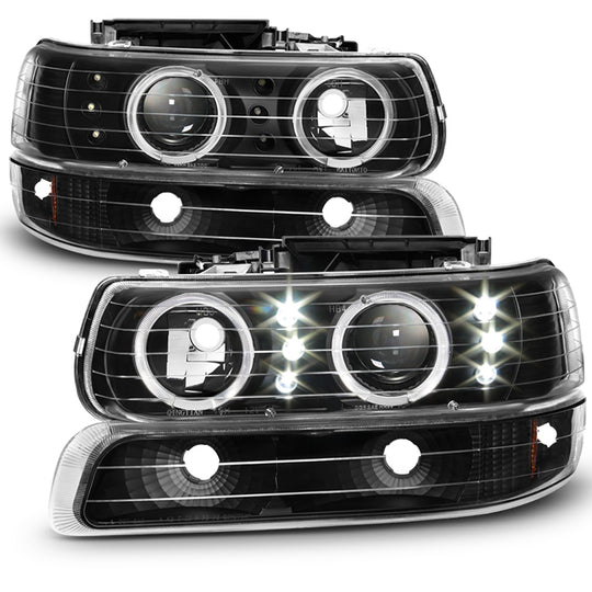 AKKON - For [Dual Halo Ring] 1999-2002 Chevy Silverado 2003-2006 Suburban / Tahoe Projector Headlights + Corner Bumper Lamp Set