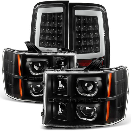 AKKON - For [Dual LED Halo Ring] 07-13 Sierra Pickup Truck Black Projector Headlights + LED Tail light Set