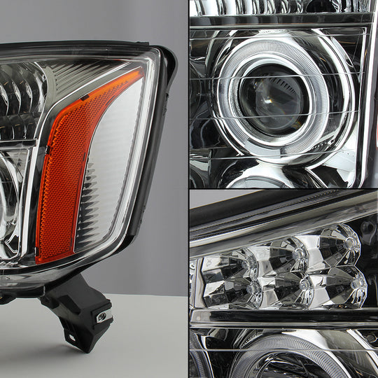 AKKON - For [Dual Halo LED] Armada / Titan Clear Projector Headlights + Clear Fog Light Lamp Combo